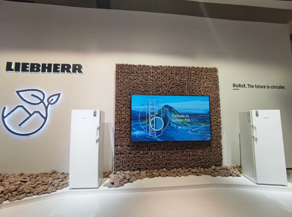 在IFA2023展上,除了在展台搭建材料和设计上有诸多绿色节能的巧思,高能效产品无疑是各个展台的主角,例如在博世家电重点展出的Green Collection绿色系列大型家电产品,包括冰箱、冰柜、洗碗机等产品,不仅能效更高,还采用了更加环保的材料,与使用传统生产材料的机型相比,该产品生产材料中的碳排放量减少了33%。利勃海尔展出的BluRox冰箱, 摒弃了传统的聚氨酯泡沫 (PU),采用磨碎的熔岩形成稳定的真空,具有更高的隔热性能,相比传统泡沫保温层更薄,在隔热辅助材料珍珠岩失效后还能更换。三星展出的Galaxy Z Flip5和Z Fold5以及Galaxy Tab S9系列采用多种回收材料,包括包装盒都是使用再生纸材料制作而成。