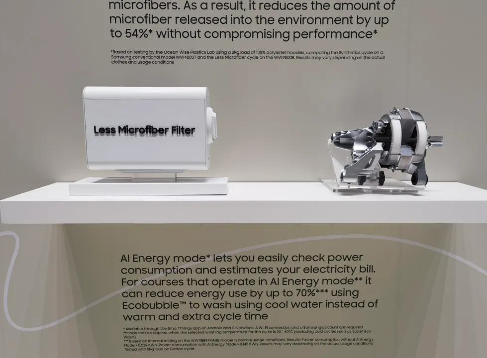 在本次IFA展上,包括三星、Miele、美的等也展出了对于减少微塑料排放的新解决方案,三星展示的一项过滤器技术就可以减少洗衣周期中高达98%的微塑料排放。