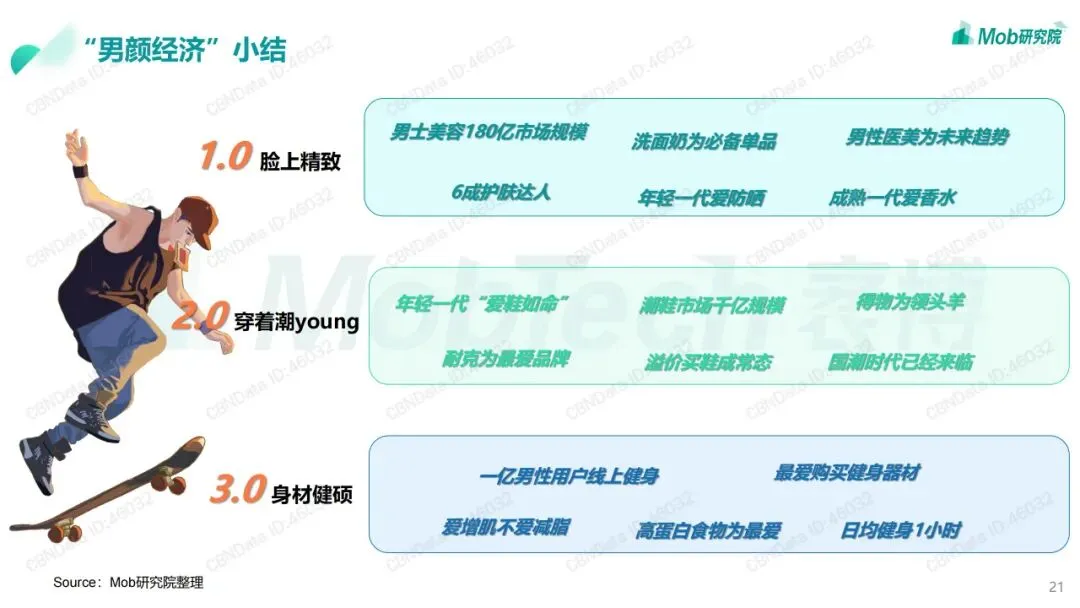 在颜值经济爆发的大环境下,爱美已不是女性的独享权利,男性对于外表的追求不断提高。近年来这种让导购觉得尴尬的情况频繁发生,因为在男性美妆博主盛行的今天,男士们也开始“花枝招展”起来了。全球范围内使用男士护肤品和护发产品的人数都在上升,这一点在亚洲表现得最为明显。