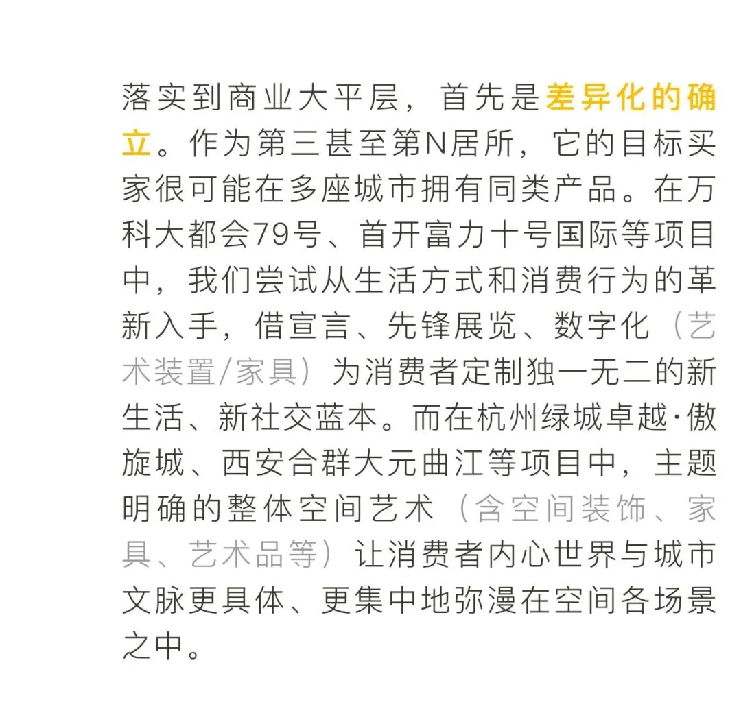 “2021-2022将是豪华公寓大年”。一年前,在深圳兆鑫汇金广场的策略报告中,我们看到了由数据得来的预判。“住宅是摇来投资的,大平层才是买来住的”。两年前,接手杭州绿城卓越·傲旋城项目委托,进行市场调研时,我们听到了消费端对于产品和市场的论调。