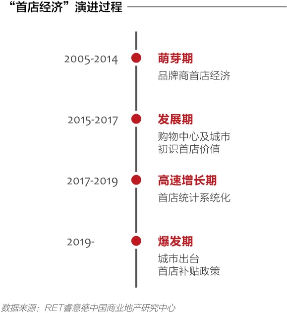 “首店”一词最早出现于国际化连锁品牌进驻中国市场的新闻报道中,意指某地理区域范围内出现的第一家门店。2005年到2014年期间,购物中心不断成熟、快速增长,同时品牌商尤其是国际连锁品牌进入中国市场高速拓展期,但关于“首店”的新闻报道依然以品牌商为主体。品牌商对于“首店”的宣传多结合品牌、集团公司的介绍及后续拓展计划,承担早期市场教育及招募拓展物业资源的作用。