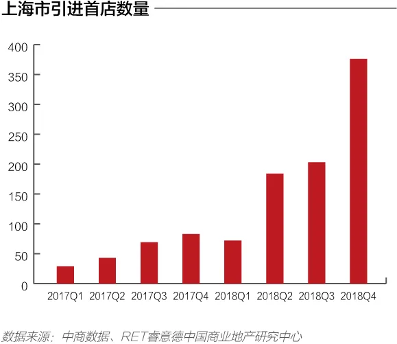 购物中心相比街铺、写字楼配套类商业等其他零售商业设施具有更加完善、成熟的运营服务体系及更浓郁的商业氛围,成为首店亮相陌生市场的首选物业。以2018年上海市场为例,84.4%的首店落脚于购物中心。