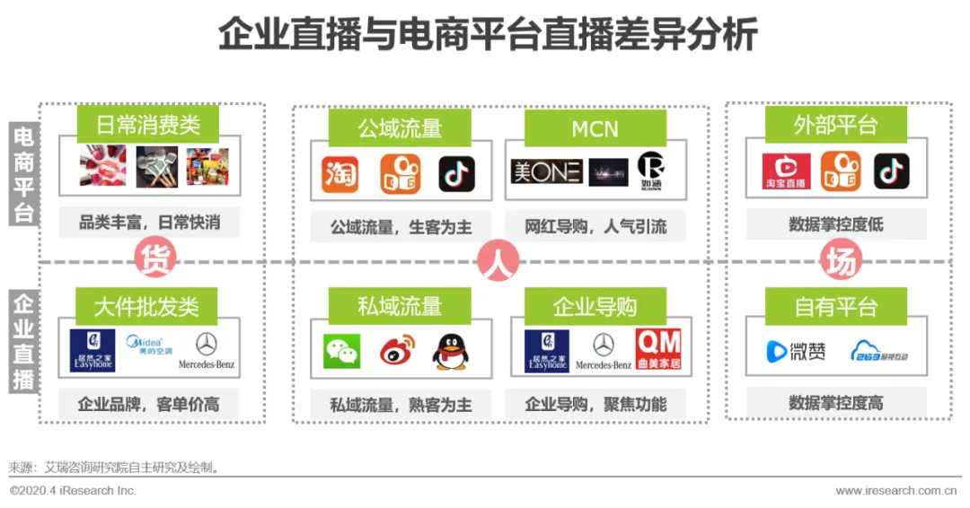而企业直播与淘宝直播、抖音、快手相区别,企业直播更多是聚焦于私域流量的精细化运营和沉淀,直播产品多以批发类和大件类自有货品为主,由企业专业员工进行具体功能的讲解,通过开设自有直播间全方位掌握用户数据。整体而言企业直播更像是传统企业销售流程的线上化,虽然总体流量逊于淘宝直播等,但客户信任度和单笔交易额远超大平台。