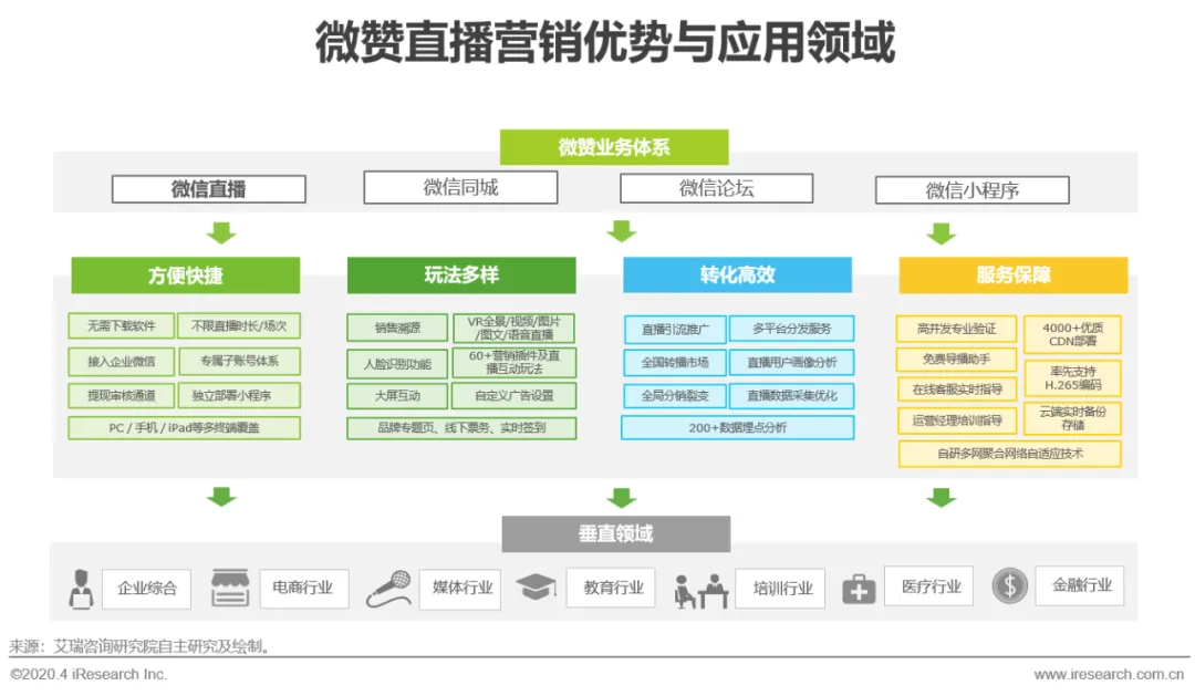 微赞借力于微信私域流量池,在电商和营销赋能方面积累了大量服务解决方案和相关经验,基于直播应用帮助客户深入发掘潜在用户,激活背后沉淀的社交关系实现裂变传播,助力企业线上获客和付费转化的提升,形成完整良性的直播营销生态闭环。