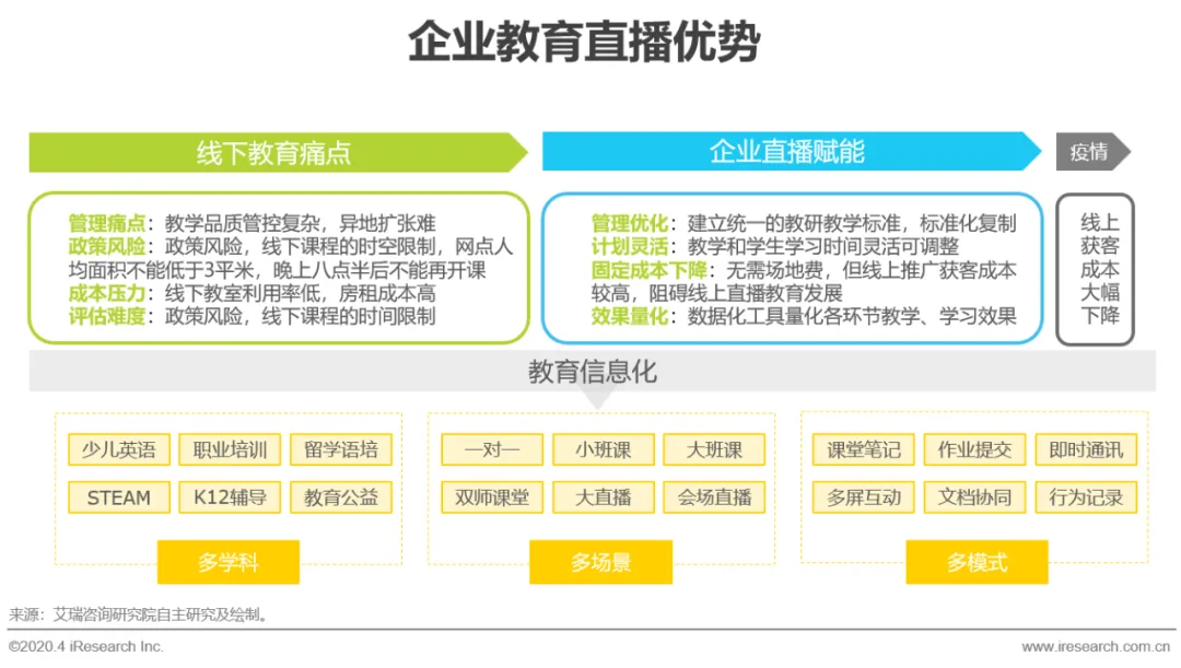 受疫情的影响教育部宣布延期开学,为了保证“停课不停学”,将课堂平移至线上成为当下的唯一选择,在线教育直播成为新风潮,低成本流量的大量涌入为整个企业直播服务市场按下了快进键。