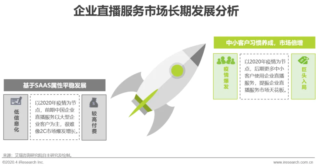 随着市场教育的完成和巨头入局,短期爆发后,企业直播服务长期发展依旧向好: