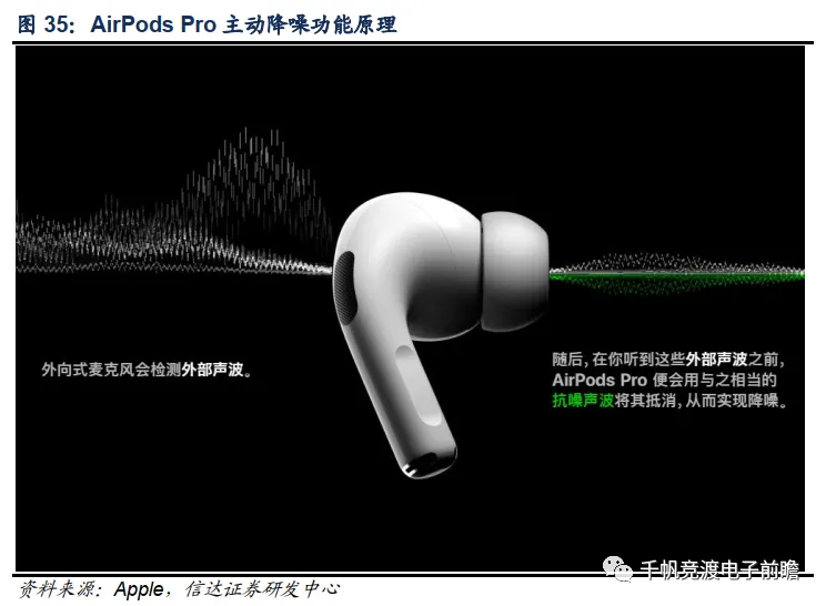 主动降噪主要用于播放音频,通过耳机监听检测环境噪音,然后发出相位相反强度相等的声波,二者叠加后噪音被抵消。要实现这样的功能耳机需要一个外向式麦克风用于接收环境噪音,而对信号的处理需要一定的时间因此需要靠主控芯片通过一定的算法对未来噪音进行一个预测,然后在噪音到来的同时播放一个相反的声波将其抵消。部分高端产品还有一个内向式麦克风,用于监听实际播放的声音,进行反馈,实现进一步的校准和优化。目前苹果、络达、恒玄、高通、瑞昱等厂商的最新TWS芯片均已经支持主动降噪功能,这也是各家厂商提升用户使用体验的发力点。