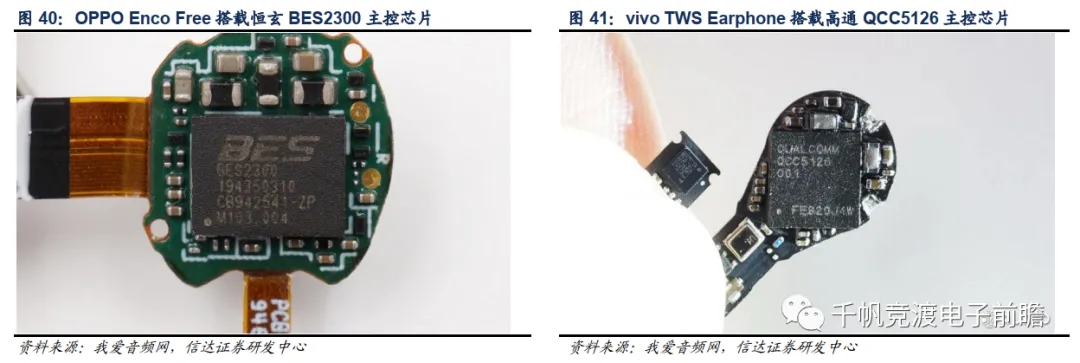 存储器:根据主控芯片方案不同分为内置式和外挂式两种,其中恒玄、络达、瑞昱、杰理等方案商采用内置式Flash,而苹果、高通、海思采用外挂Flash方案。伴随着国内存储器的崛起,兆易创新、普冉半导体、芯天下等公司成为该领域的主流供应商。