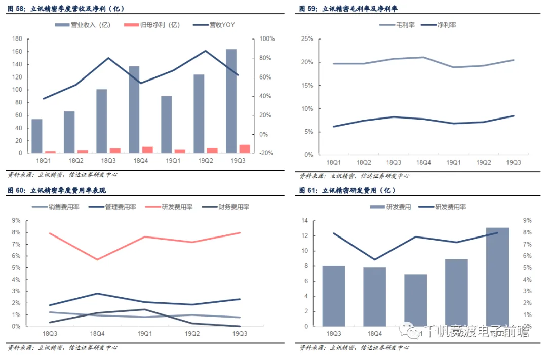 (1)精密制造平台公司,AirPods+通信护航业绩增长:立讯精密是A股上市公司中首屈一指的精密制造平台。公司自连接器起步,不断切入高附加值市场,全面布局LCP天线,无线充电,声学,马达,iWatch,AirPods等业务板块。