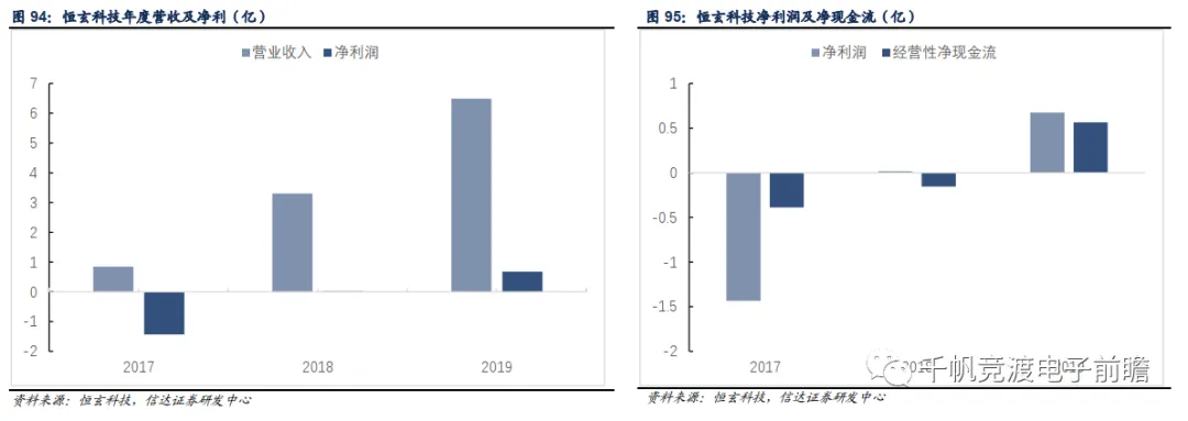 除上述公司外,近期TWS耳机主控芯片龙头厂商恒玄科技首次公开发行并在科创板上市项目辅导工作已经完成。公司成立于2015年,是业内领先的智能音频芯片供应商,专注于无线音频平台的RF/SoC芯片的研发和销售,为客户提供具备WiFi/BT无线连接的音频芯片。在近年的TWS浪潮中,公司的芯片产品深受业界认可,被华为、JBL等一线品牌广泛采用,给公司业绩带来了飞跃式增长。2017-2019年公司分别实现营收8457万元、3.3亿元和6.49亿元,从2017年净亏损1.4亿元到2019年获得净利润6738万元,迅速实现了扭亏为盈的逆袭,成长速度可观。