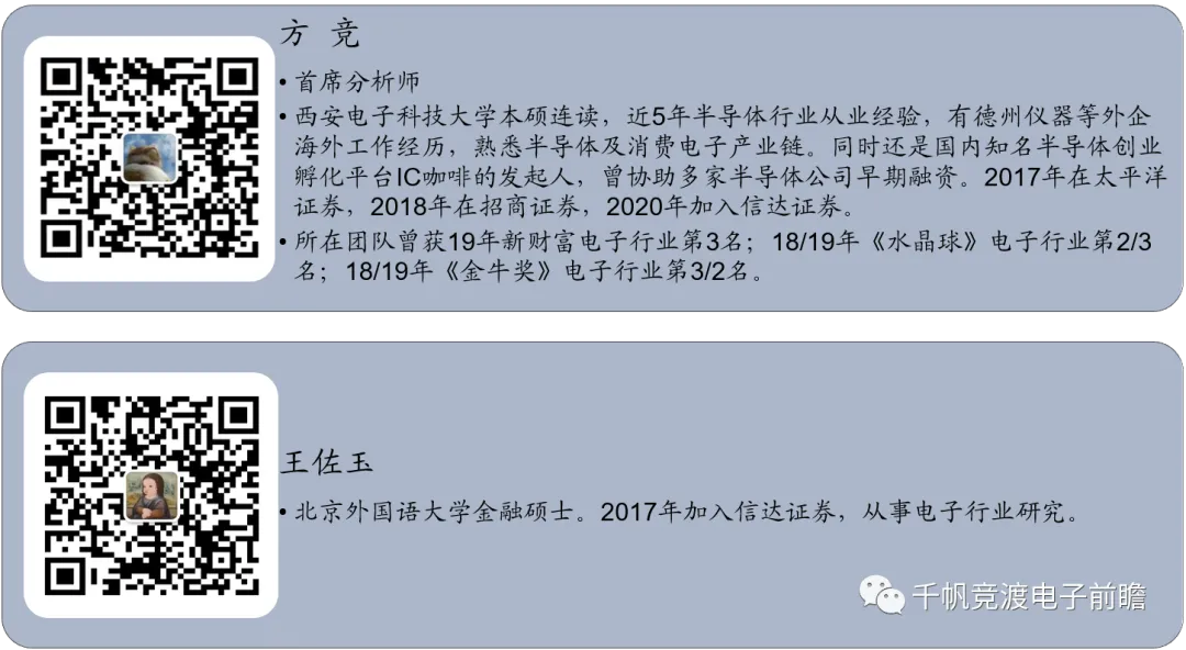 (3)5G、IOT、物联网应用叠加,需求持续爆发:公司受益下游应用市场全面发力,5G手机渗透带来射频端价值量增加;基站新基建带来站量增长和通道增加;TWS耳机、智能音箱及智能手表等消费电子加速放量;物联网领域工控医疗应用成长,都将带来模拟芯片价值量提升。下游应用爆发带来的需求增量是公司成长的强劲动力。