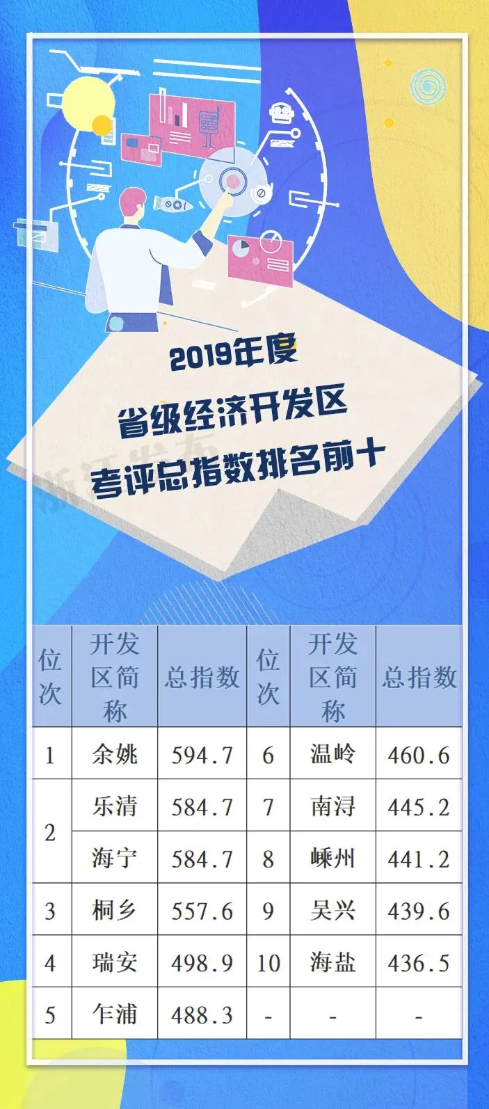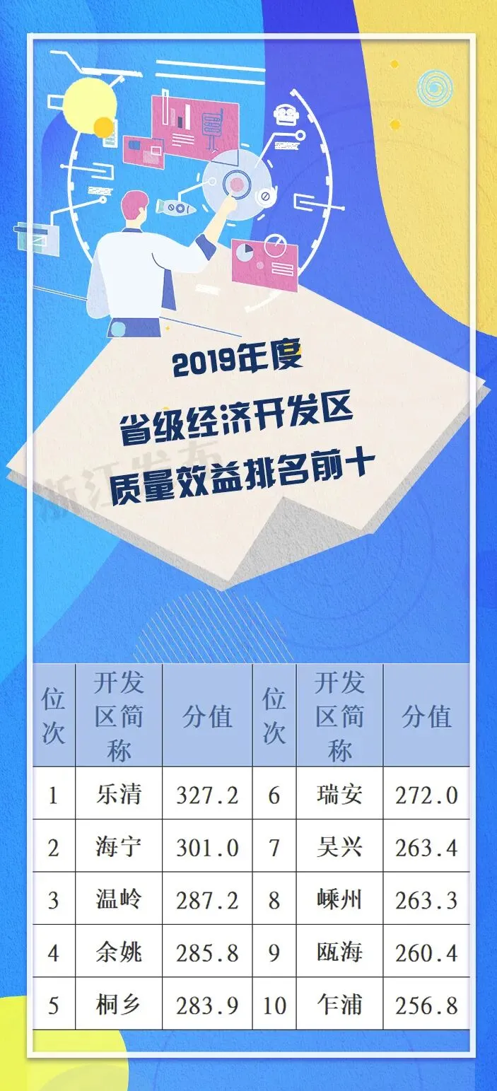 2019年度浙江省经济开发区综合考评结果显示,全省20家国家级经济技术开发区考评总指数均值399.5分,同比增长5.7%,国家级经济技术开发区综合水平进一步提升。