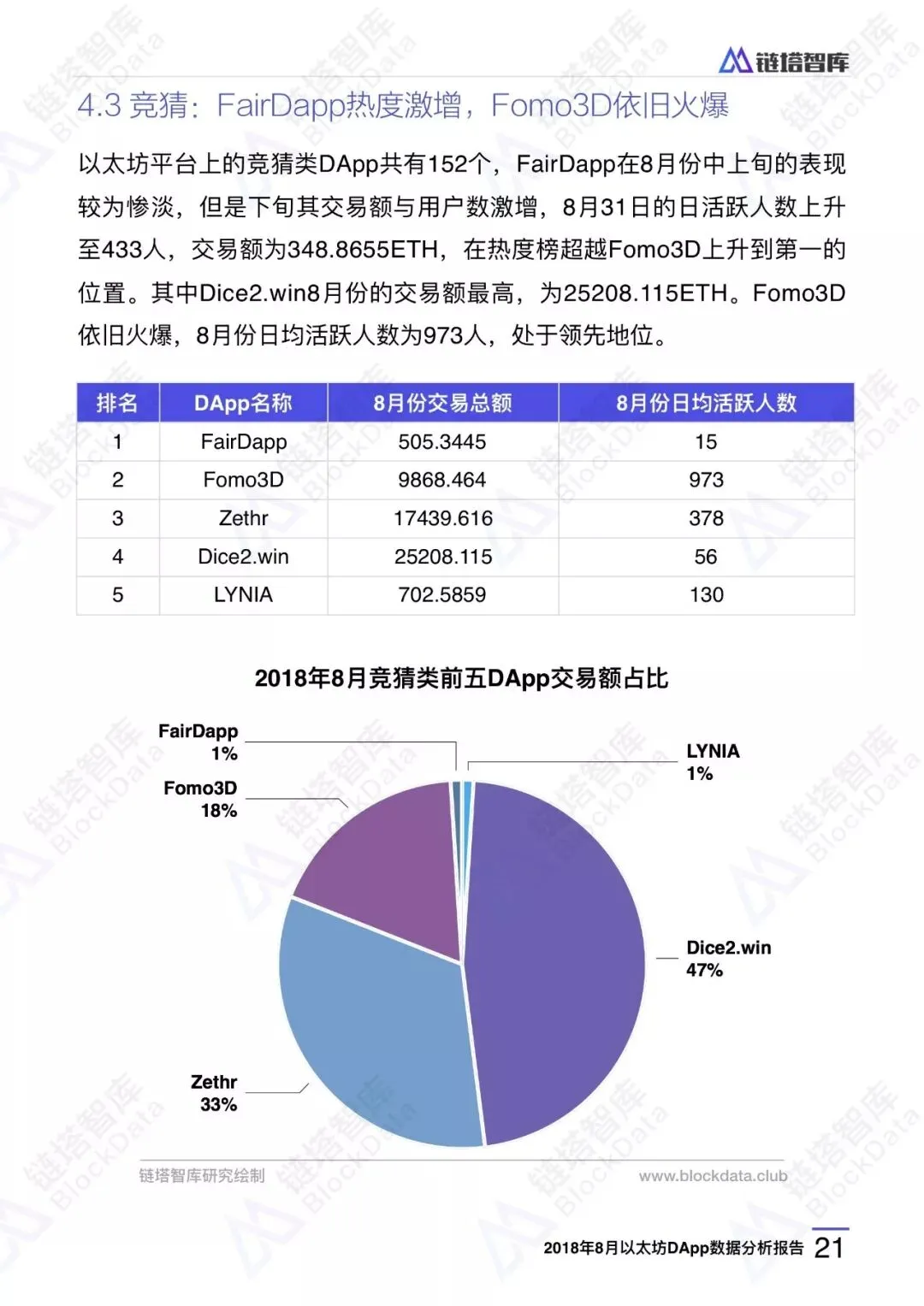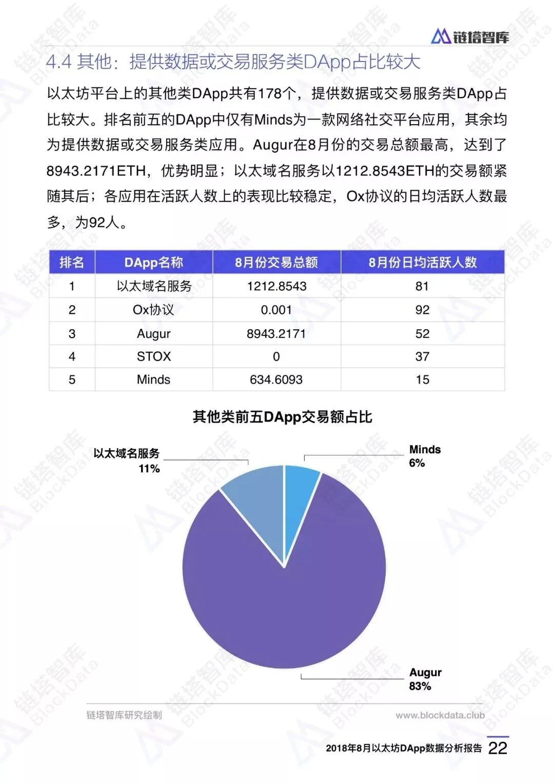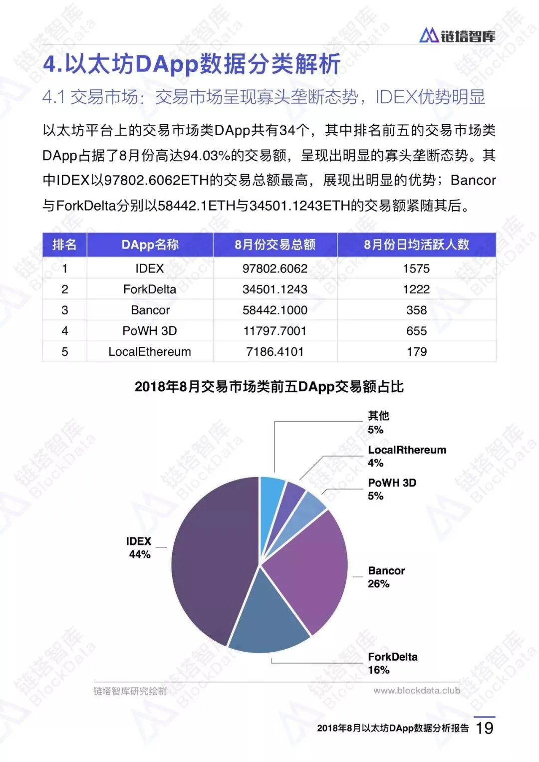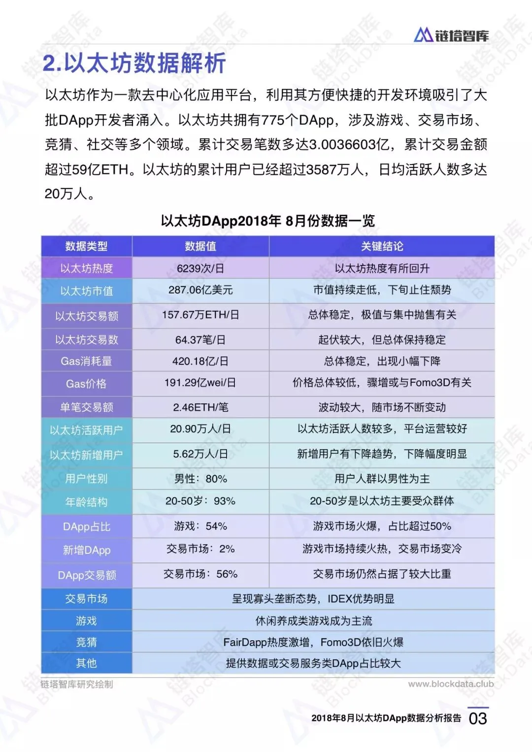 链塔智库BlockData对以太坊DApp8月份的交易数据、用户情况、行业发展、应用排名进行了研究和分析,形成完整报告。