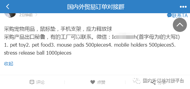 加入下面【国内外贸易订单对接群】与客户直接联系