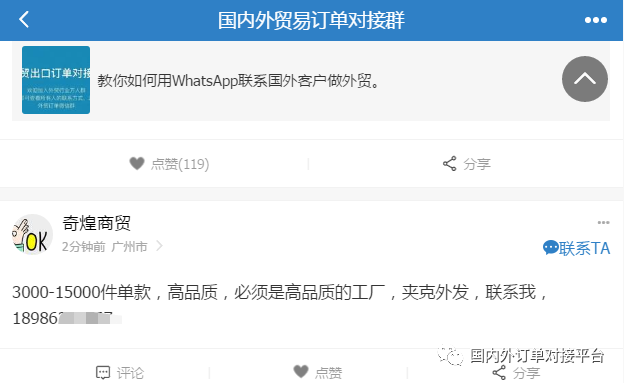 能做的直接加入【国内外贸易订单对接群】与客户联系,或者添加客服微信邀请进群;