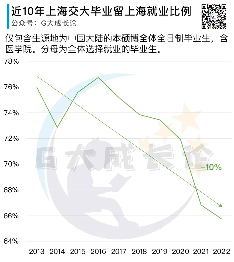 所以在毕业生数据中,G大特别找出了选择就业的毕业生中,留在上海就业的人数占比: