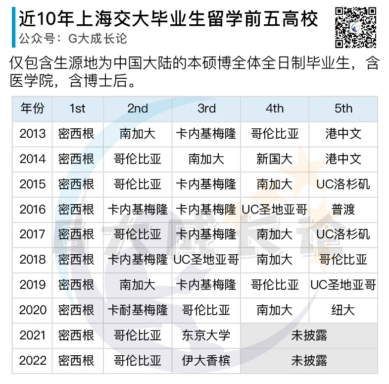 同时我们也看到,中美关系等多重因素之下,近两年交大赴海外留学前三名的高校出现了新面孔。东大和UIUC都是很优秀的高校,这点毋庸置疑,然而我们也的确应该要感知到背后的世事变迁。