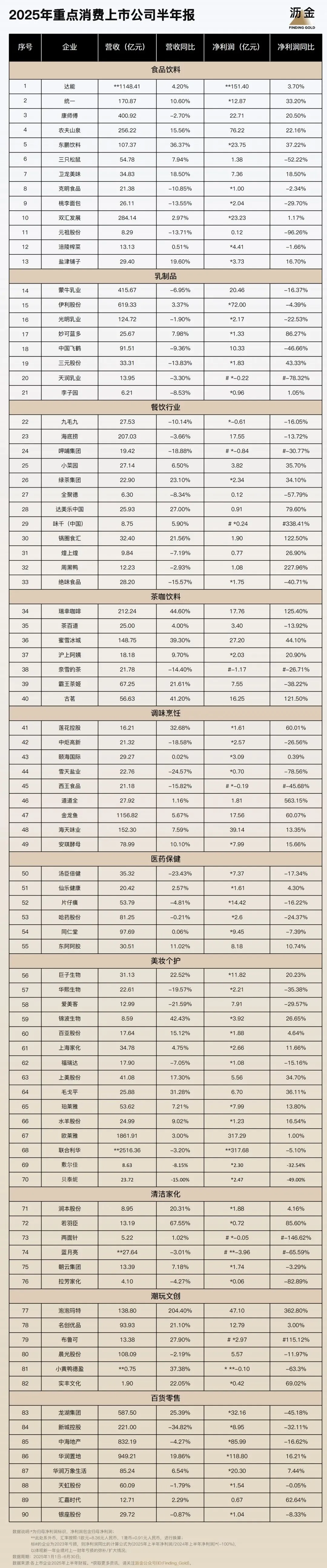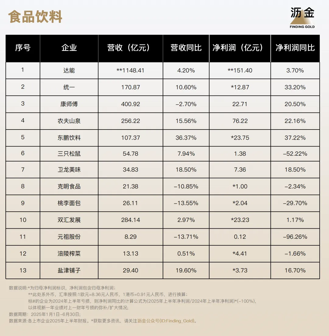 饮料板块中,茶饮料市场格局固化与创新并存,农夫山泉茶业务半年营收首破百亿,东方树叶占据无糖茶大部分份额,而统一春拂绿茶以139.63%的份额增幅实现突破。