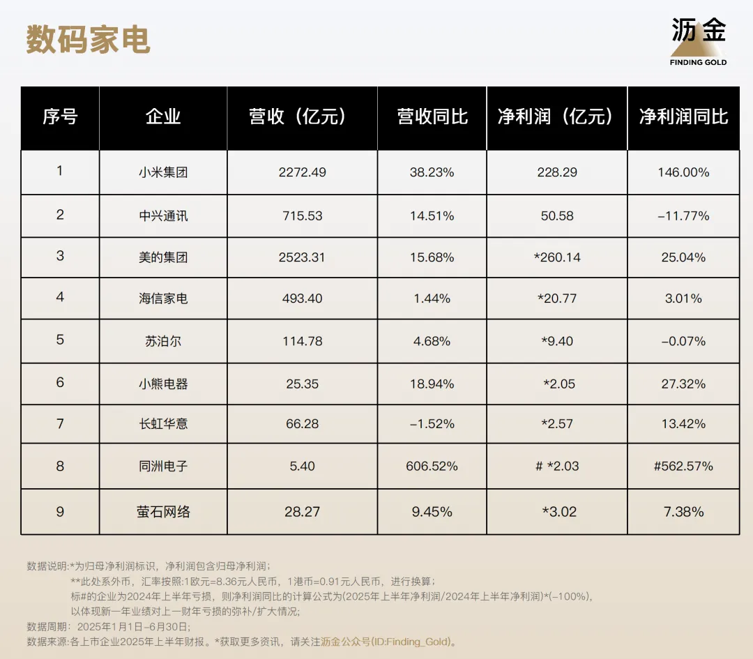 小米集团2025年上半年营收2272.49亿元,同比增长38.23%,净利润228.29亿元,同比增长146%。