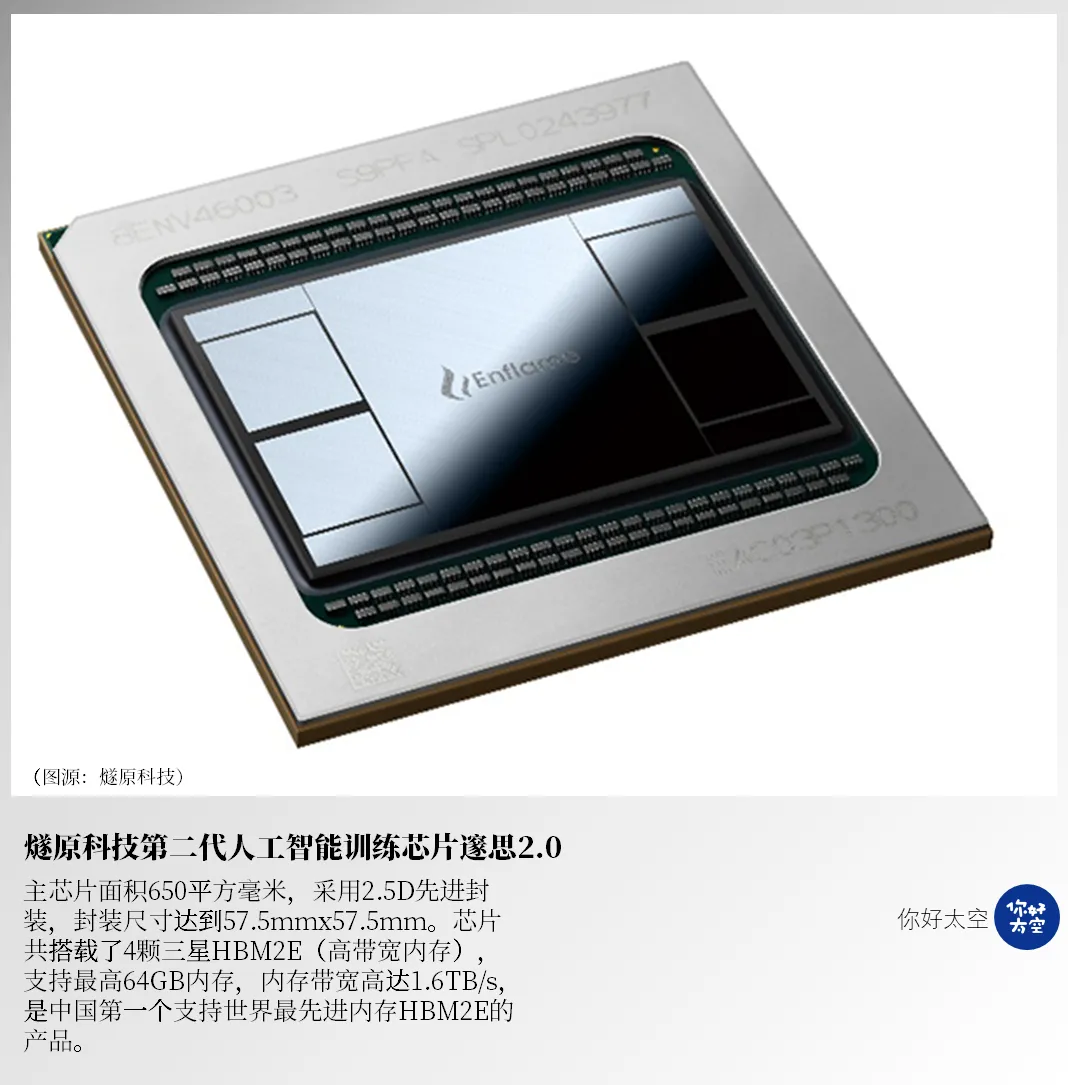 燧原科技。专注AI训练与推理芯片,邃思2.0训练卡(FP32算力40TFLOPS)提供软硬一体解决方案,2024年启动A股IPO辅导。