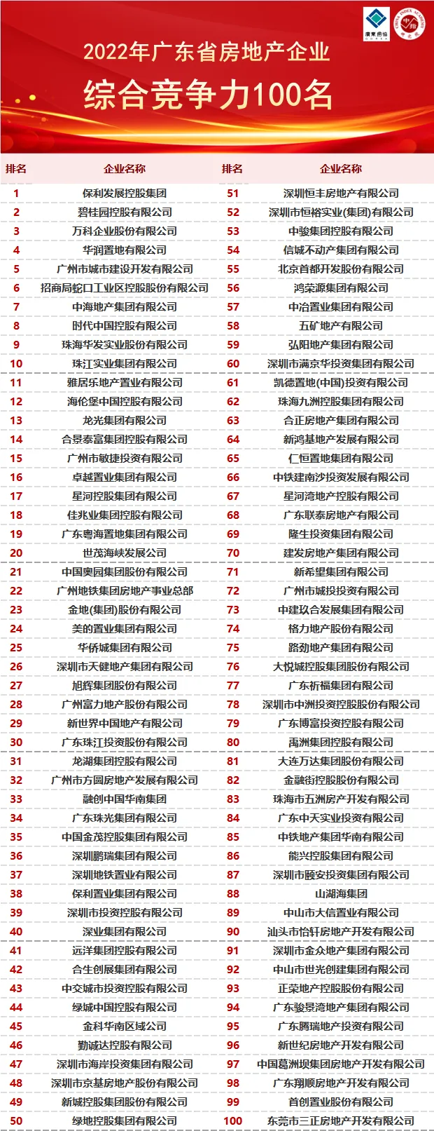2022年广东省房地产企业综合竞争力研究报告正式发布