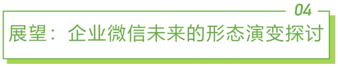 企业微信为各供应商搭建了开放的生态平台,在部分数字化场景实践中颇具成效,但其在产品体验、管理模式及生态建设方面仍具有价值释放的较多可能。首先,为提升用户体验,企微也在逐渐布局更完备的产品体系,优化产品内在性能,在客户诉求和合规性中寻求最佳平衡点。其次,企微内部对各厂商的分级制度化管理与外部用户反馈结合,可使供应商在生态平台内得到更具标准化及透明化的管理。最后,产业互联为企业微信在B2B场景及上下游资源整合的探索增添更多可能性。基于不变的产品定位,企业微信将积极挖掘更多场景,拥抱各类型厂商共建生态,共同为行业的数字化发展赋能。