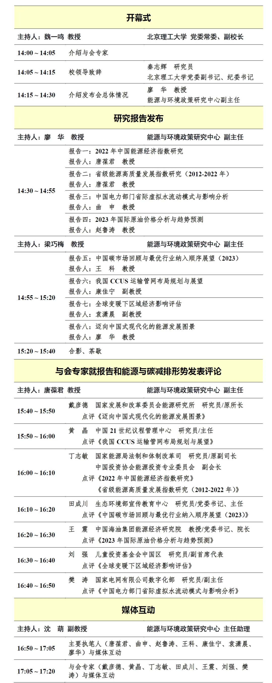 北京理工大学能源与环境政策研究中心在长期研究的基础上,将在会议现场发布研究报告,并邀请中国21世纪议程管理中心、国家能源局法制和体制改革司、国家发改委能源研究所、生态环境部宣传教育中心、中国海油集团能源经济研究院、国家电网有限公司、儿童投资基金会等单位的专家发表评论。自2011年以来,北京理工大学能源与环境政策研究中心已连续12年在当年初向社会公众发布年度预测与展望研究报告,引起了广泛关注,形成了重要的社会影响。