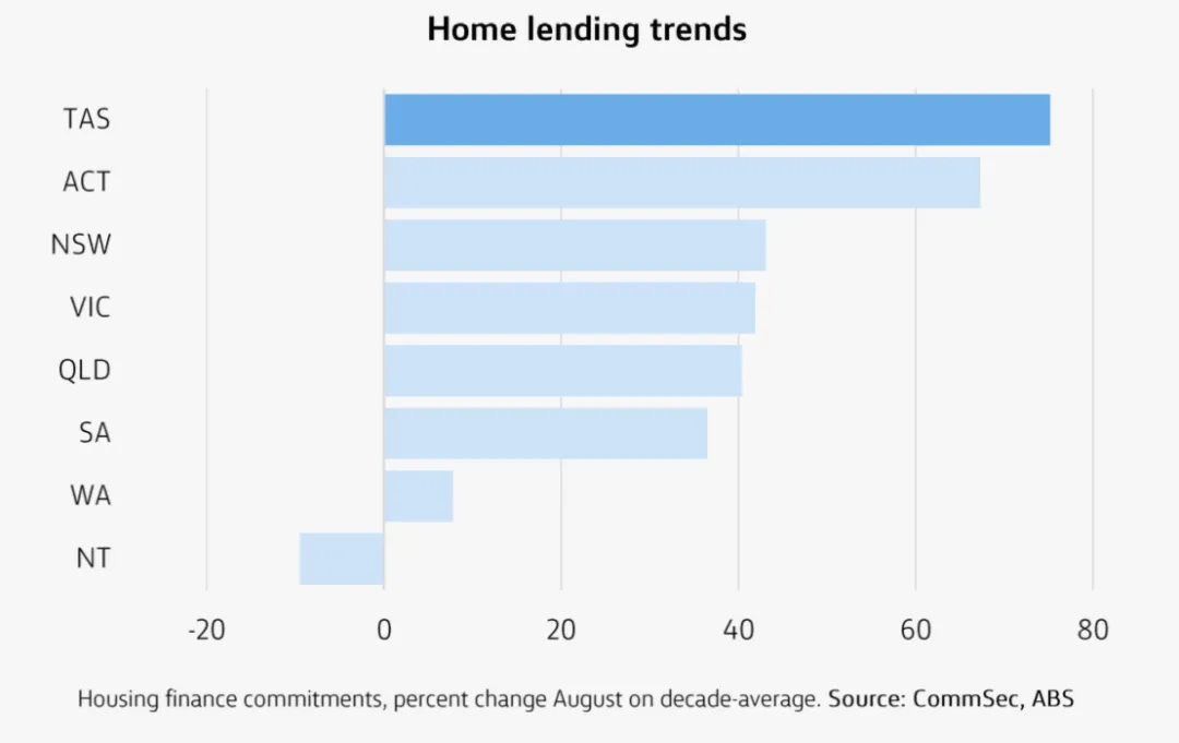 住宅信贷和新屋开建率:在这个指标上,最近房市大火的西澳州却并不高,排名澳洲倒数第二。