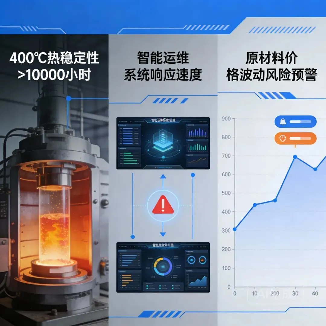 关键成功要素:企业需重点关注三项能力建设 —— 熔盐材料的高温稳定性控制(目标指标:400℃下热稳定性>10000 小时)、分布式储能的智能运维系统开发(响应延迟<50ms)、跨区域政策合规能力(尤其欧盟碳边境调节机制下的认证适配)。
