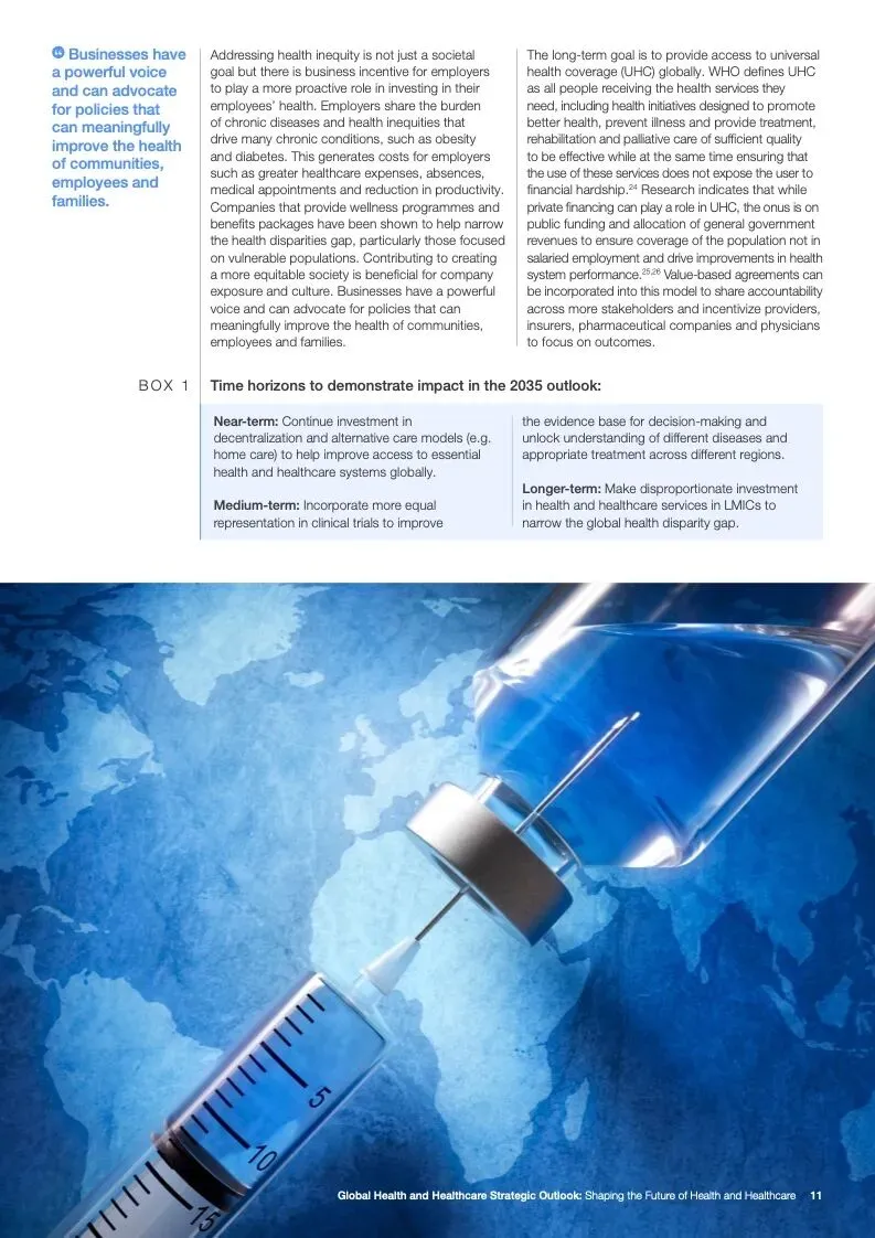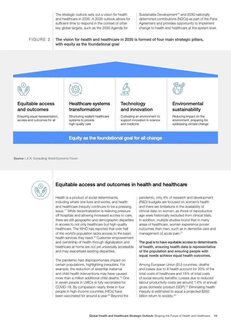 这一战略展望提出了2035年卫生和保健远景,由四个主要战略支柱组成,以公平为基本目标。