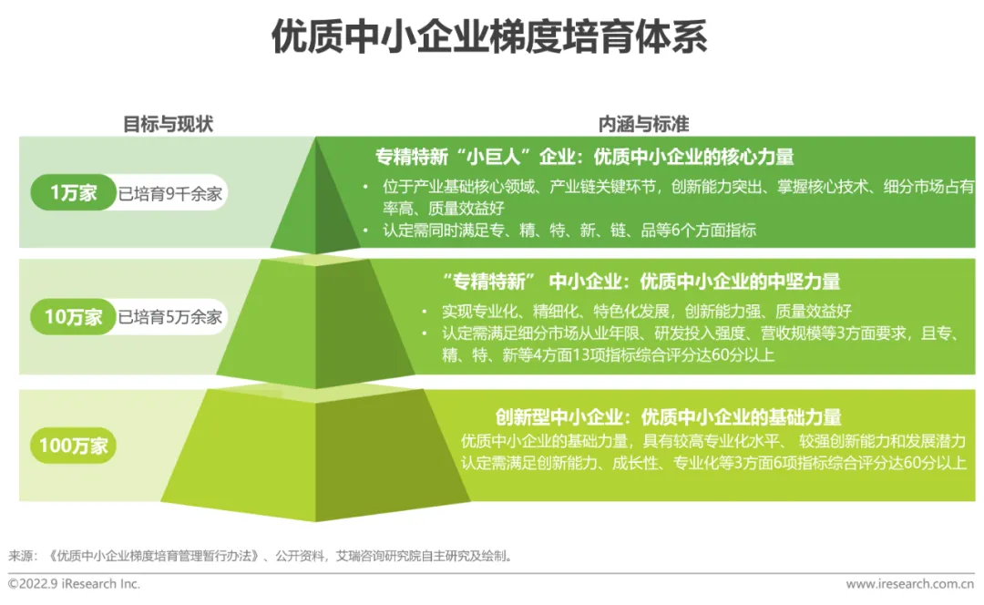 “专精特新”企业具有专业化、精细化、特色化、新颖化特征,我国明确提出到2025年培育一万家专精特新“小巨人”企业、十万家“专精特新”中小企业的目标。