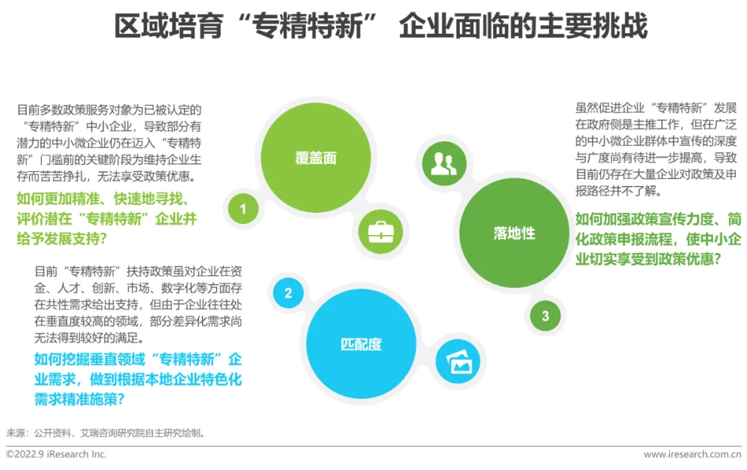 国家层面支持政策瞄准资金支持、创新协同、人才支持、品牌市场、企业转型、精准对接服务等6大方向。地方政府在国家政策指引下,协同科研院所、金融机构及以大型平台型企业、区域性科技服务机构、龙头型“专精特新”企业为代表的市场化服务商等多元主体共同营造“专精特新”企业服务生态。