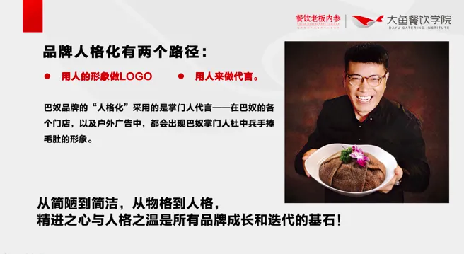 如果你是快餐,也跟着巴奴学习减法,就是错的。你的减少的不是浪费,而是客单价。 低品质的竞争者是跟对手打价格战。高品质的竞争者是跟对手打品牌战。 “认知”的小成,是看懂成功的一个环节;“认知”的大成,是看懂成功的整个路径。 顾客就是要占领的阵地。 上帝站在兵力多的一方。 新技术改变局势。 数量上处于劣势的部队其战争艺术在于,要在进攻点和防御点投入更多的兵力。 防御就其作战形式本身而言比进攻强。 用艺术设计打造沉浸式体验成为餐饮业新的竞争力,已经成为趋势。