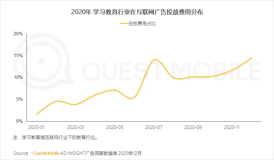 教育培训行业中互联网教育投放增长更为显著,同比增长113.7%。