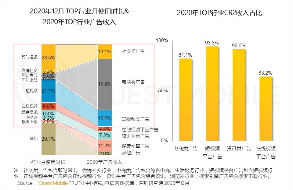 3.6 2020年TOP媒介竞争格局中最明显的变化是购买交易、短视频等媒介的广告营收进一步提升