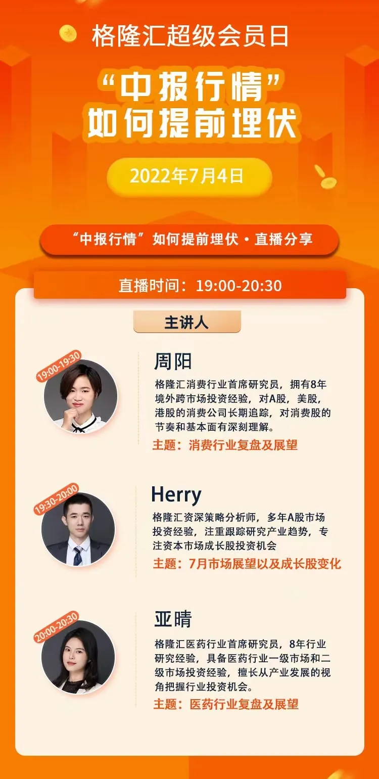 4月25日,会员群与每日复盘:带动成长股反弹先锋是“光伏” 5月6日,每日复盘强调:汽车整车、汽车零部件困境反转 5月21日,珍惜底部的筹码——大消费 5月31日,侯哥复盘提示:高赔率(地位+催化)的券商板块 6月13日,公司分析提示:新东方在线的困境反转 6月26日,Herry周复盘:估值修复与业绩反转的消费