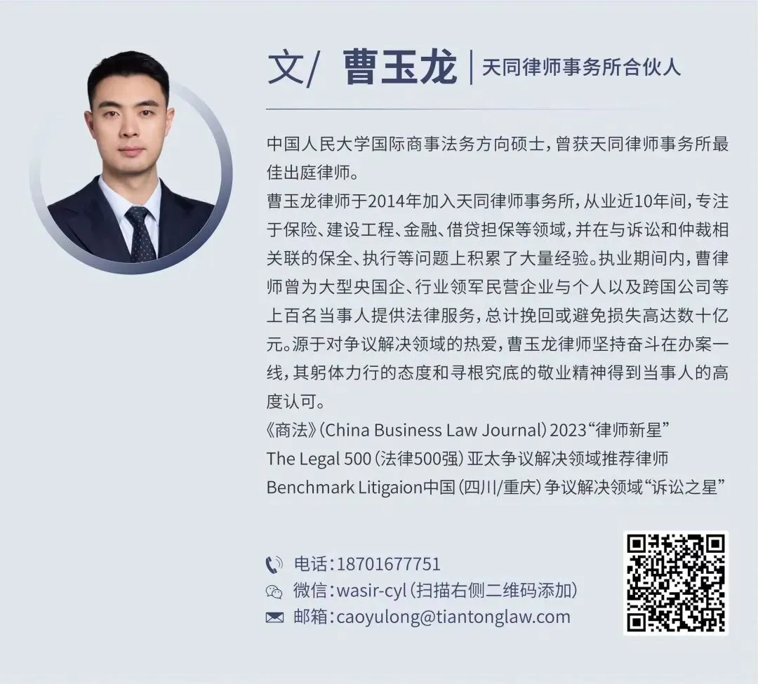 文/曹玉龙 天同律师事务所合伙人;胡雅蓓、卞舒雅、张卫涛 天同律师事务所律师
