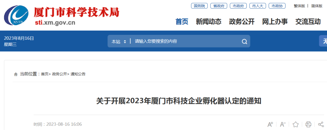 根据《厦门市促进科技企业孵化器高质量发展实施办法》(厦科规〔2021〕3号),市科技局现启动2023年厦门市科技企业孵化器认定工作,具体如下: