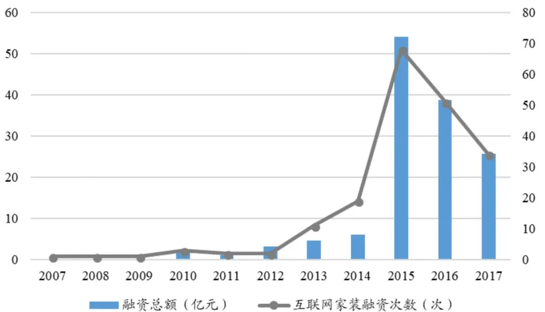 从一级市场来看,过去几年,主要融资热度集中在2015年后的互联网家装行业。