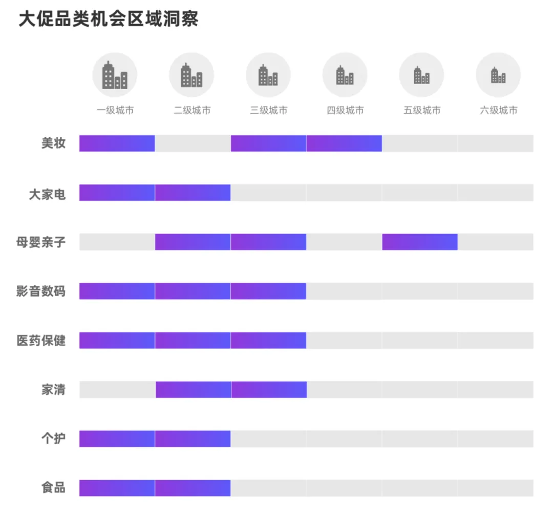不仅如此,通过对PI指数的进一步挖掘,我们还能得到更多品类洞察,如下沉市场,母婴亲子、美妆、家清的种草效果比较突出,尤其是母婴亲子下沉种草在五线城市明显;大家电、个护、食品的种草优势主要集中在一二线市场,医药保健种草优势逐渐从一二线扩展到三线城市等等,就不一一举例了。