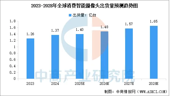 全球智能摄像头市场增速明显放缓,已从过去的爆发式增长,转向以替换升级和细分需求驱动为主的存量竞争新阶段。中商产业研究院发布的《2025-2030年中国智能摄像头市场调查与行业前景预测专题研究报告》显示,2024年全球消费智能摄像头出货量为1.37亿台,同比增长7.7%。2025上半年,全球消费智能摄像头出货量达0.67亿台,同比增长2.7%。中商产业研究院分析师预测,2025年全年全球消费智能摄像头出货量将达到1.40亿台,2028年达到1.65亿台。