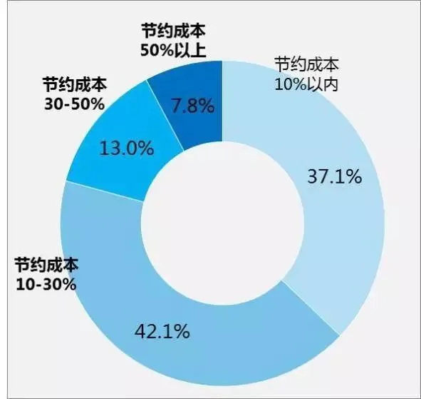 基于调查,用“10-30%”及“30%以上”两个关键值来衡量企业号的效率提升贡献,在提高内部运营、管理效率方面,使用者选择上述两个关键值的占比分别为46.7%和37.2%,提高销售、服务效率方面分别为40.4%和26.6%,提高上下游的合作、管理效率方面分别为31.8%和28.2%。