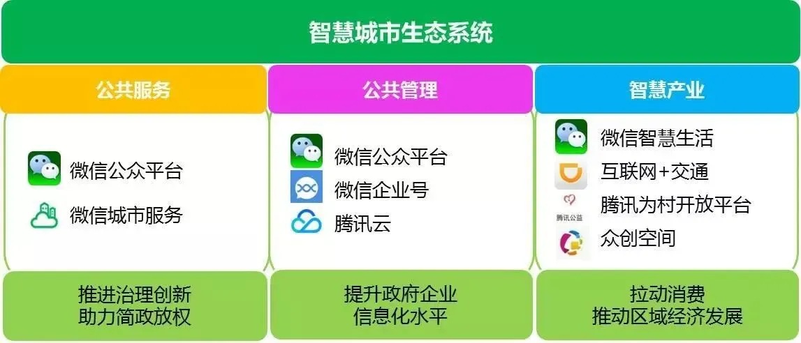 微信协助统筹政府、社会、市民三大主体,以公众号、城市服务协助政府为市民、企业提供便捷的公共服务通道,调动各方面的积极性、创造性,促进城市协调发展。