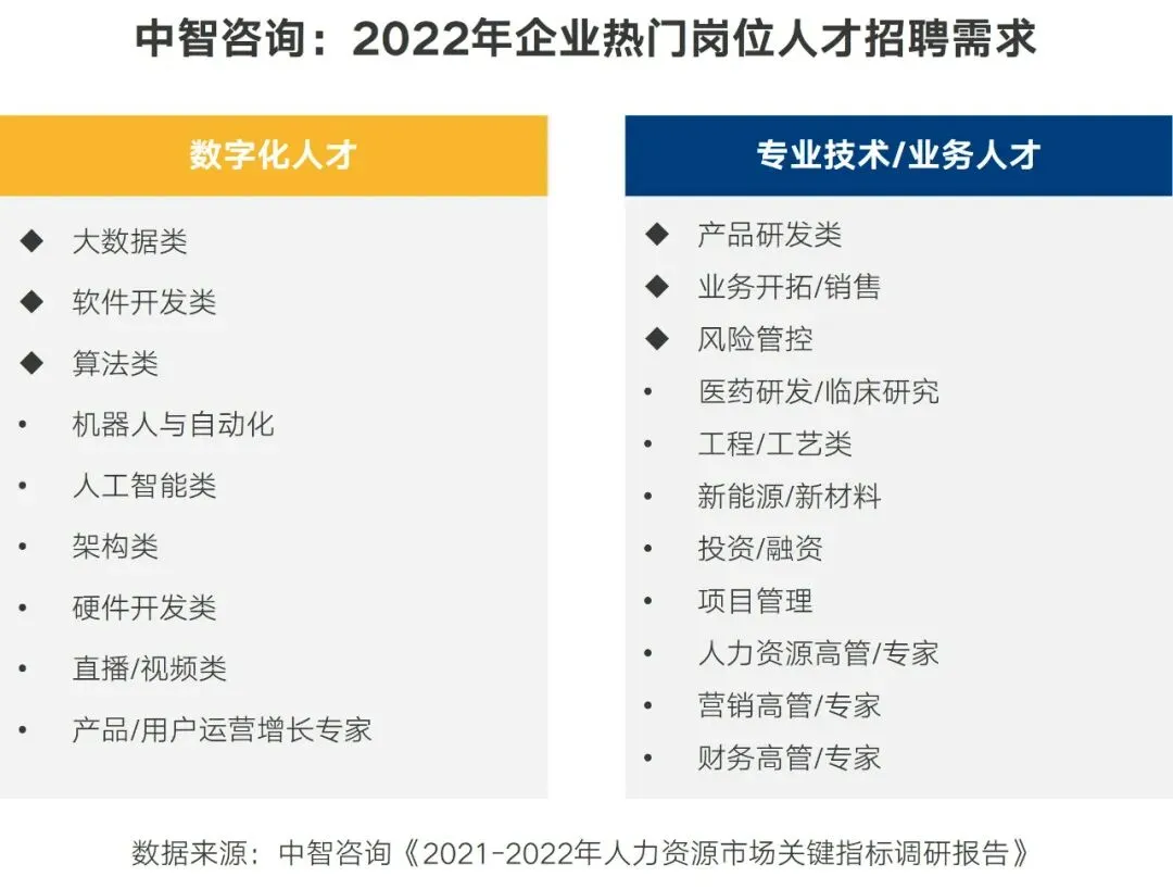 中智咨询调研结果显示,2022年42%的企业将增加人员编制,45%的企业将增加社会招聘的招聘量,36%的企业将增加校园招聘的招聘量,人才市场需求稳中有升。
