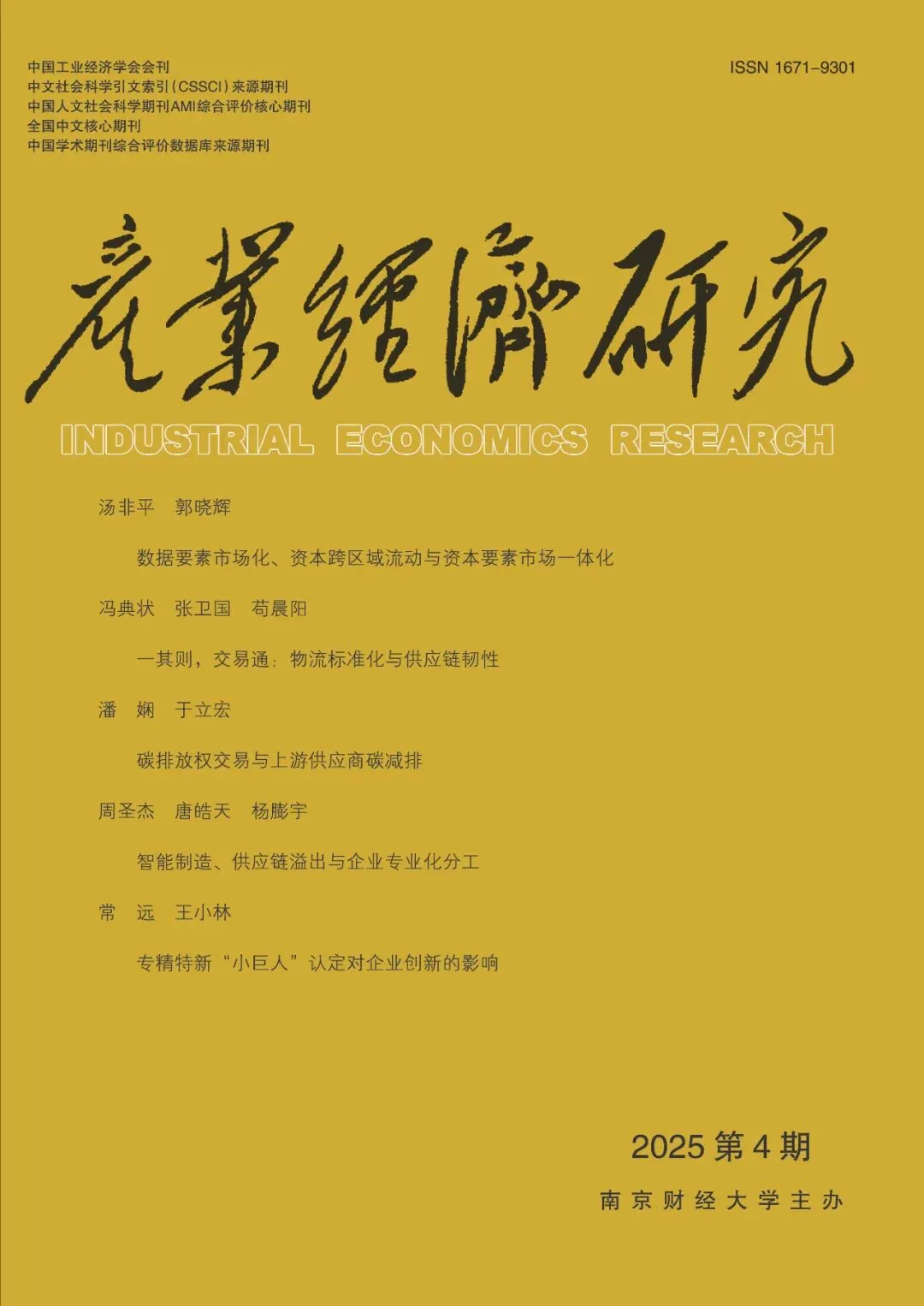 摘要:智能制造作为高阶制造业态和新型生产方式,已成为推动分工深化进而实现经济高质量发展的重要抓手。将我国智能制造试点示范项目的推广视为一项准自然实验,采用交叠双重差分法揭示生产端智能制造对下游企业专业化分工的溢出效应。研究发现,生产端开展智能制造显著提升了下游企业的专业化分工水平。机制分析表明,智能制造作为一种新型生产模式,通过改善供应链企业间的结构协同程度和削减下游企业的外部交易成本,深化了下游企业专业化分工。异质性分析表明,智能制造的供应链溢出效应在信息不对称程度更高和关系更松散的供应链以及代理成本更高的下游企业中更为显著。进一步研究发现,上游智能化生产驱动的分工深化可有效转化为企业生产效率的提升。研究提供了生产端智能制造通过供应链网络重塑产业分工格局的微观证据,并为智能化政策的协同优化设计提供了理论依据与实践启示。