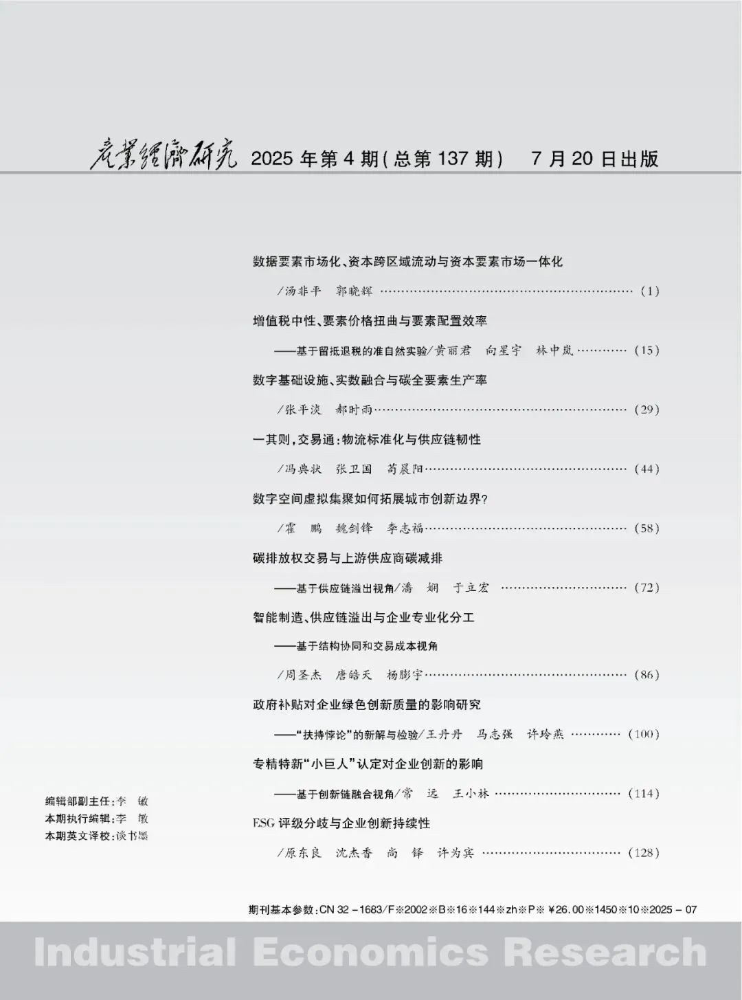 关键词:数字经济;虚拟集聚;创新边界;知识溢出;供应链韧性
