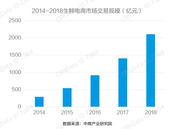根据公开资料显示,2018年生鲜行业市场规模达4.93万亿,同比增长5.3%。政策对“菜篮子”行业支持、消费者收入增长及需求升级、电商环境渗透和新零售模式对新业态的刺激、供应链和仓储等技术打磨,共同推动生鲜行业发展。近五年生鲜电商市场规模快速提升。综合类电商/本地生活平台、垂直电商、传统线下门店转型后的商超菜场、以及盒马等新零售模式下的新兴业态不断涌现,为市场注入活力,2018中国生鲜市场交易规模突破2000亿。