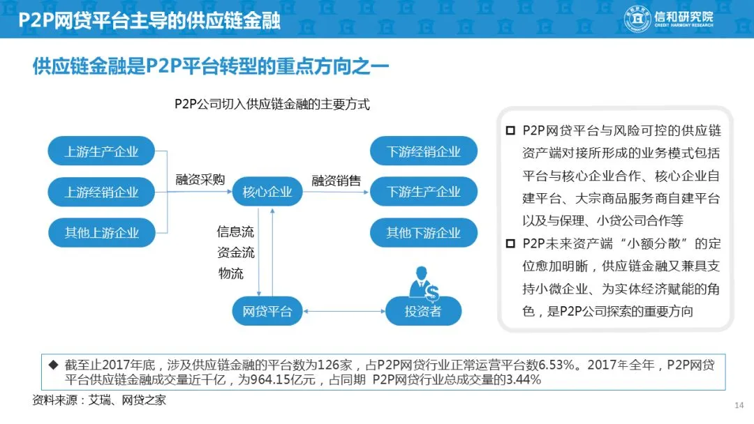 中小微企业融资难一直是我国经济发展中亟待解决的问题,而供应链金融则被认为是中小微企业获得融资服务的最佳途径之一。供应链金融经过近些年的发展,参与主体越来越多,其中P2P网贷平台作为最被看好的参与主体,具有非常广阔的前景,基于此,2018年7 月,信和研究院联合薪动钱包发布了《供应链金融及商业模式案例研究报告》。