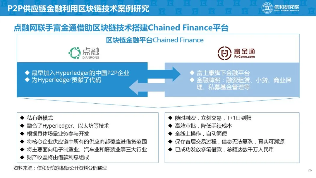 金融科技将推动供应链金融向纵深发展,特别是区块链技术有望在供应链金融中扮演重要的角色。目前,供应链金融市场开发比例不足15%,未来还有较大发展空间,P2P网贷平台的融资门槛相对较低且资金来源、风险偏好多元化,可以满足产业链内中小企业的个性化需求,未来的发展值得期待。