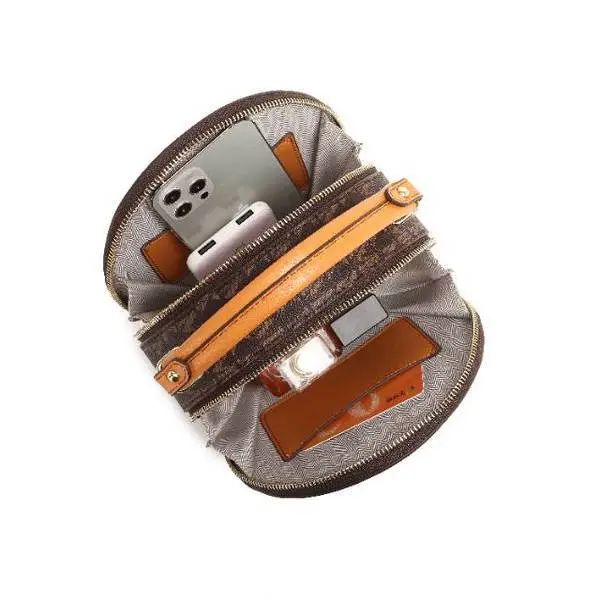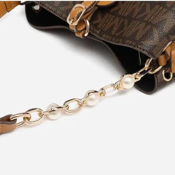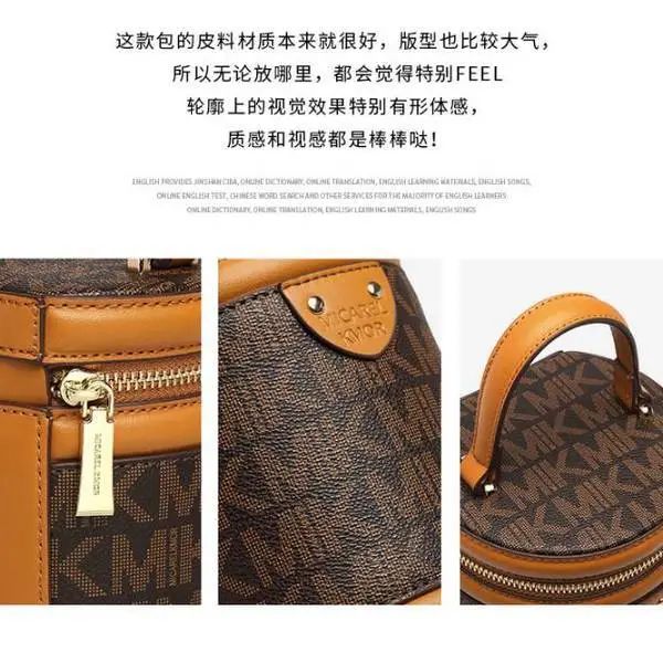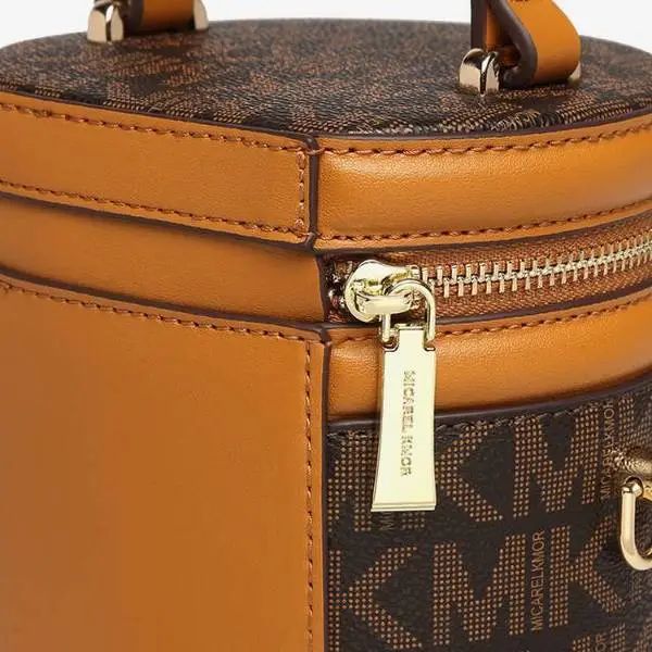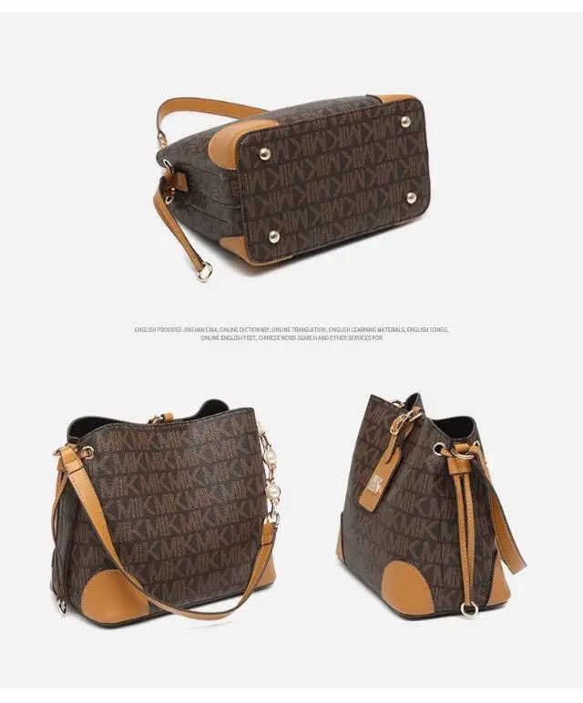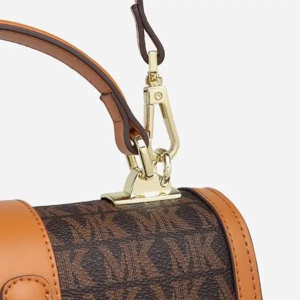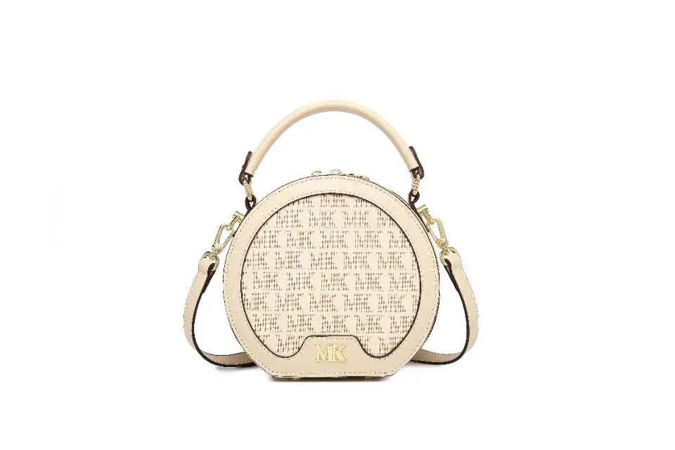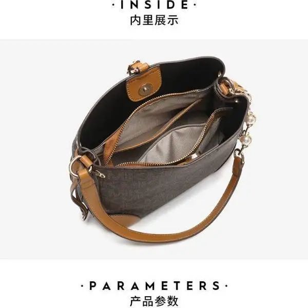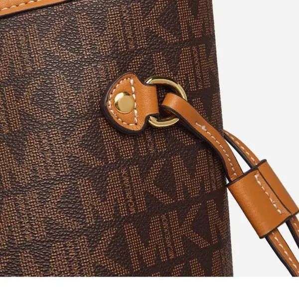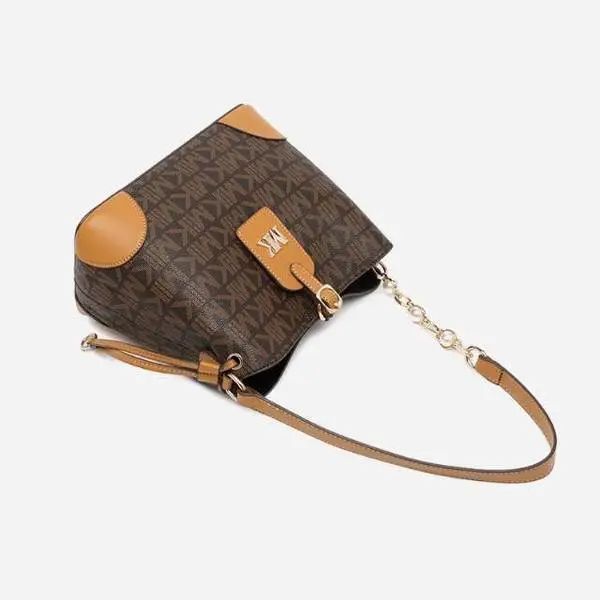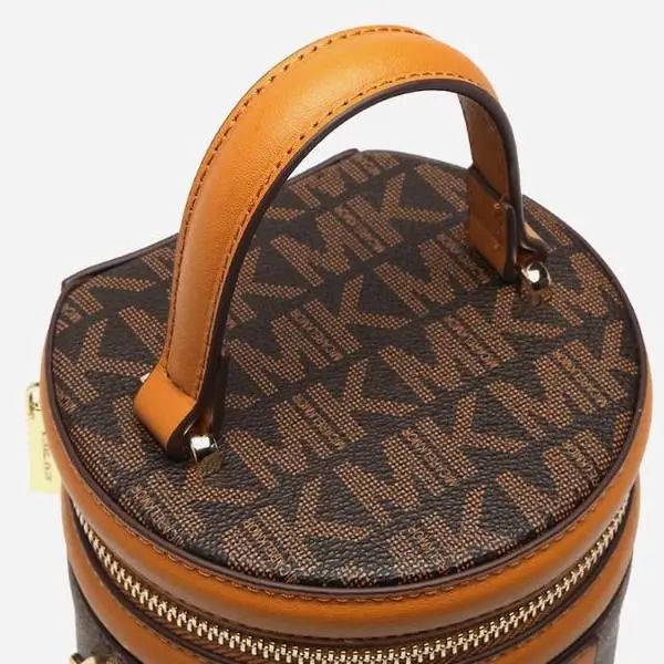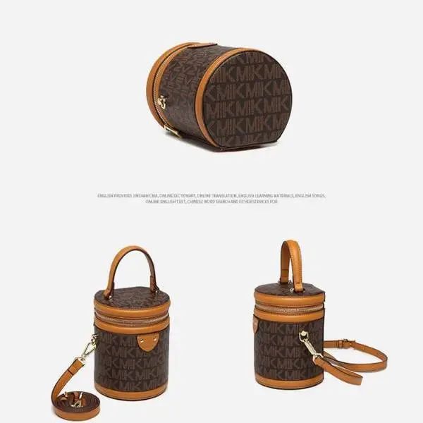 推品25 【品牌】:MICAREL KMOR(英国MK) 【货号】:MK8322-B (新) 【品名】:单肩新款水桶包 【颜色】:棕色/米色 【材质】:PVC/牛皮 【尺寸】:13*12*17 【风格】:极简,复古 【款式】:单肩包/斜跨